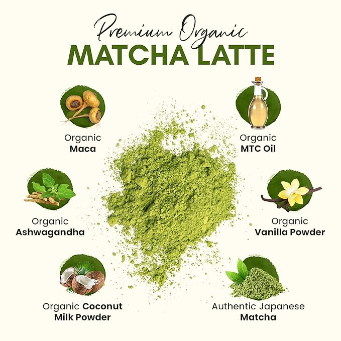 GREAT TASTELoaded With Antioxidants - Defend your body from free-radical damage with our matcha powder latte. With our matcha powder organic and all-natural, you’ll get to reap a wholesome blend of antioxidants for healthier metabolic and gut function.: A distinct Matcha taste combined with an Organic Vanilla powder to create a rich new flavor! We also added a dose of organic coconut milk powder and MCT Oil powder for a nice creaminess in the blend.
