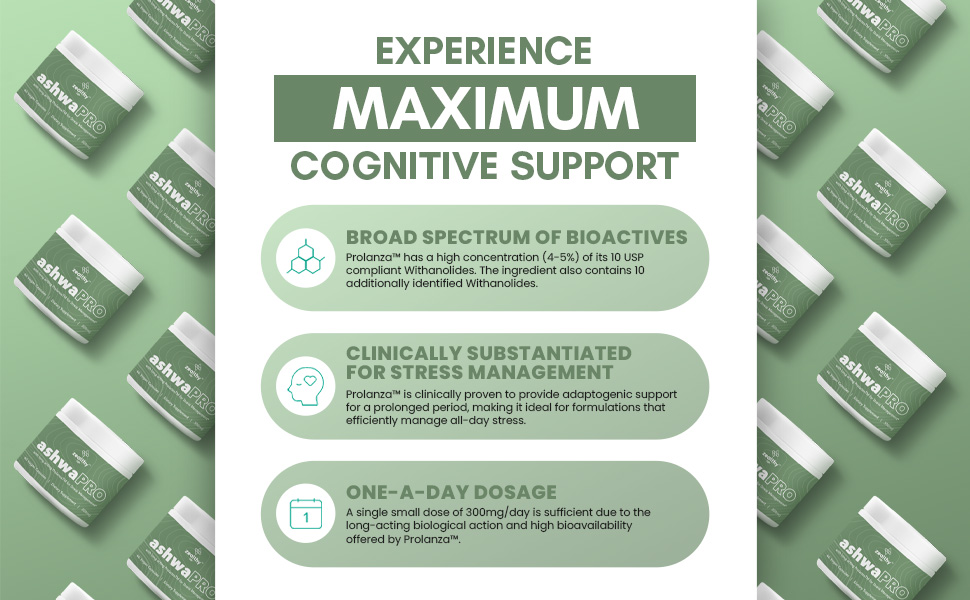 Experience Maximum Cognitive Support The benefits of ashwaPRO go beyond those provided by plain energy supplements for women and men. Its formulation fully utilizes the wellness-boosting properties of ashwagandha root extract with real bioactives, distinguishing it from other brands and placebo pills. Making our vegan supplement a part of your daily routine greatly benefits your cognitive functions.